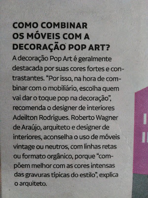 MATÉRIA PUBLICADA NA COLUNA SALA & ETC DO CADERNO DE IMÓVEIS DO JORNAL O POVO DE 08/02/2020 FOCOU NO ESTILO POP ART.